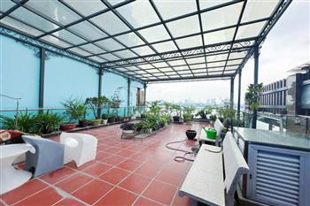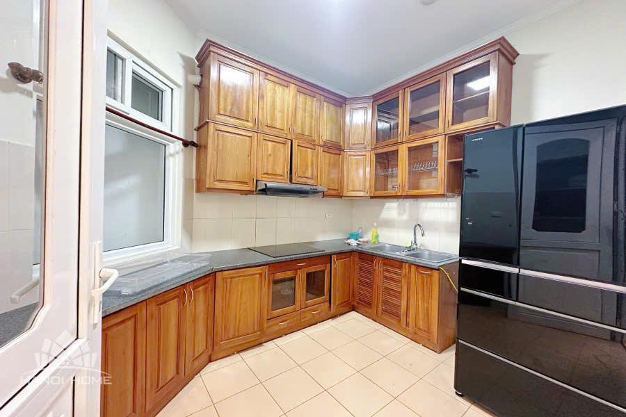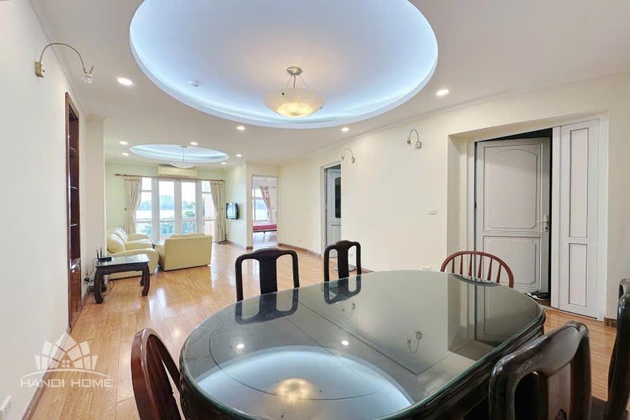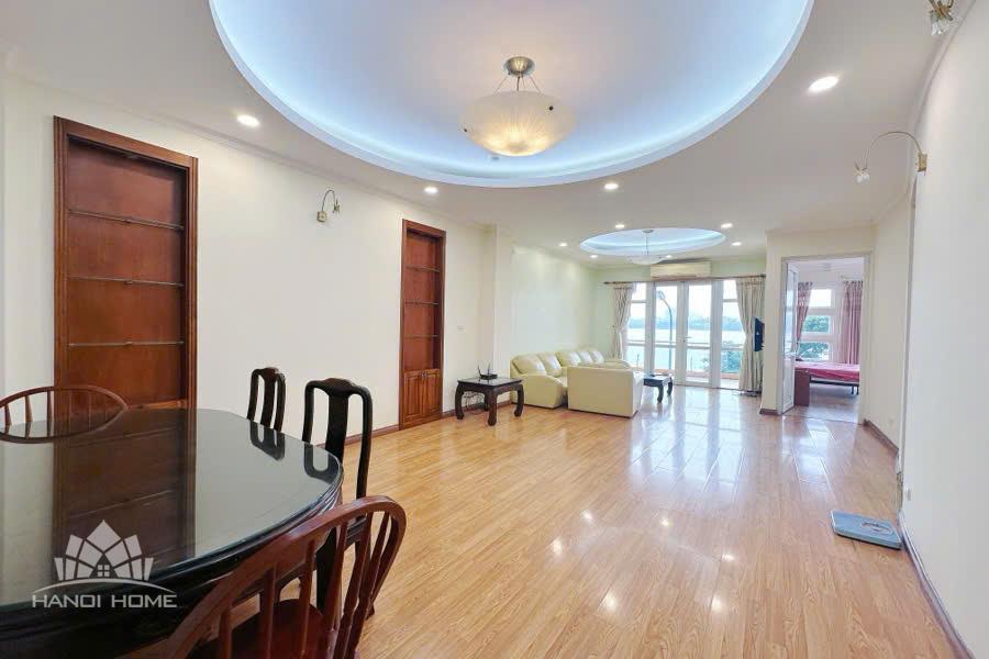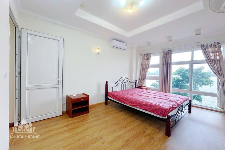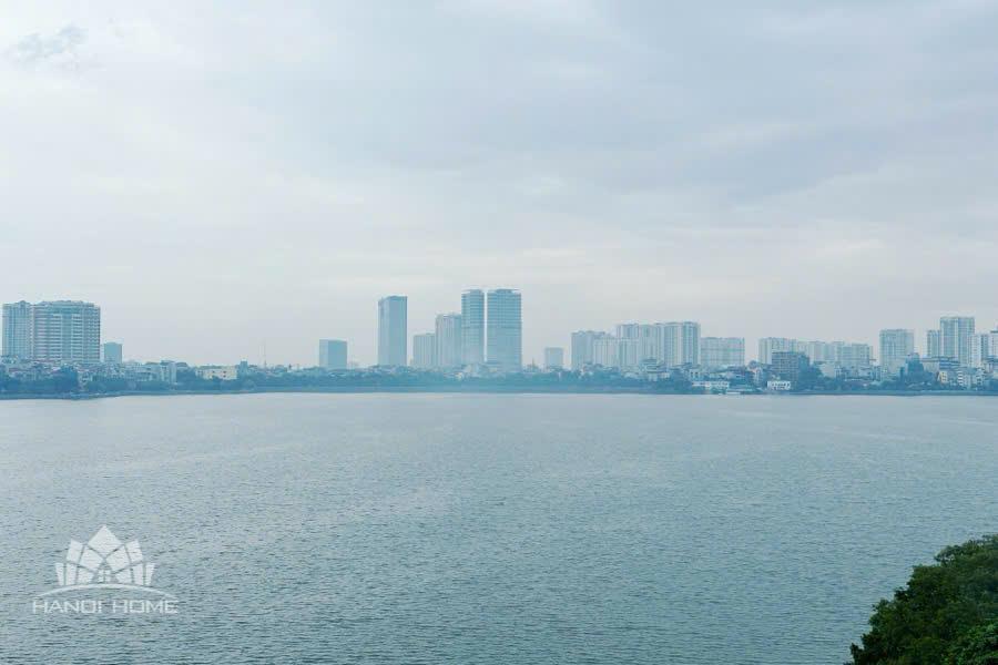 Located in the prime area of Quang Khanh, Tay Ho, this apartment offers a unique living experience that blends modern comfort with serene relaxation. With stunning views of West Lake visible from both the living room and the master bedroom, the expansive lake and city skyline become a living canvas that shifts beautifully throughout the day. Fully furnished with high-end interiors, the open-plan living space is bright and inviting, featuring luxurious natural wood flooring and a refined ceiling lighting system, including elegant circular recessed lights and a central chandelier. The kitchen is thoughtfully designed with natural wood cabinetry and equipped with modern appliances for effortless daily use. The standout feature of this apartment is its spacious, private rooftop terrace, meticulously curated into a lush garden oasis. It’s the perfect place to grow plants, breathe fresh air, and unwind above the city. This tranquil green space offers absolute peace and panoramic views, making it a true sanctuary in the heart of Hanoi. The bedroom benefits from the breathtaking lake view through large windows, ensuring an abundance of natural light and fresh air. This Quảng Khánh apartment is the ideal choice for those seeking a high-quality lifestyle in Tay Ho