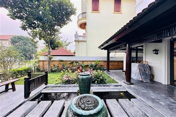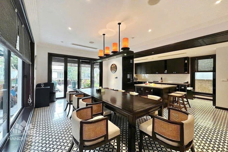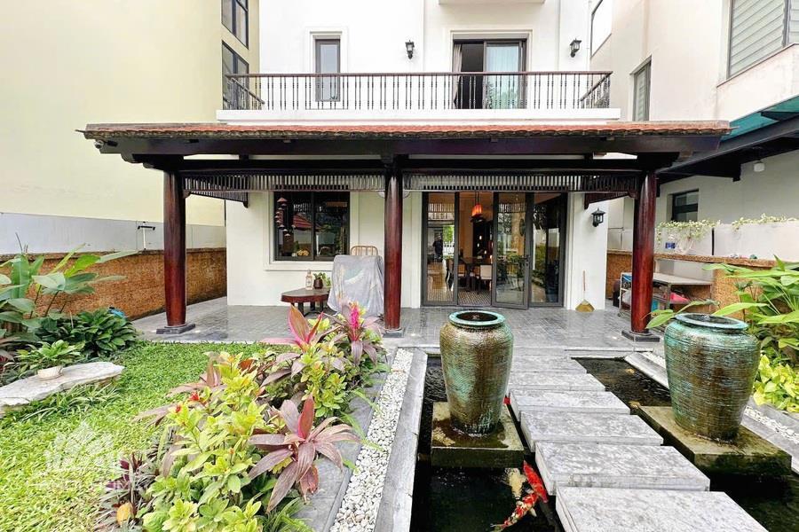 Located in the prestigious eco-urban area Vinhomes Riverside, this villa offers a spacious 450 m² of living area, designed in a modern style that harmoniously blends Eastern and Western aesthetics. The home features 5 bedrooms and 4 bathrooms, providing comfort and convenience for the whole family. Features • Corner location with an airy backyard overlooking the river, ensuring privacy and tranquility. • Thoughtfully designed, well-ventilated, welcoming natural light and breeze, creating a serene and tranquil atmosphere. • Premium finishing materials, with underfloor heating on the ground floor and in the master bathroom. • Modern, high-end kitchen and sanitary equipment. • Convenient transportation: 30 minutes to the airport, 5 minutes’ walk to BIS International School, and direct VinFast bus connections across the city. Internal & External Amenities • 3 swimming pools, including the iconic infinity pool at Vincom Rooftop. • Golf course just 200m away. • Green parks and landscaped gardens within the community. • Convenient supermarket chains: Vincom, VinMart, K-Market. • Asian–European dining options with 30% discount for residents. • Nearby popular brands: Starbucks, Annam Gourmet, Pizza 4P’s…
