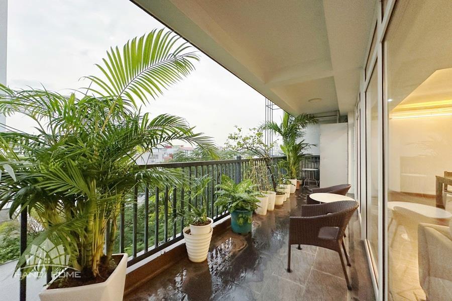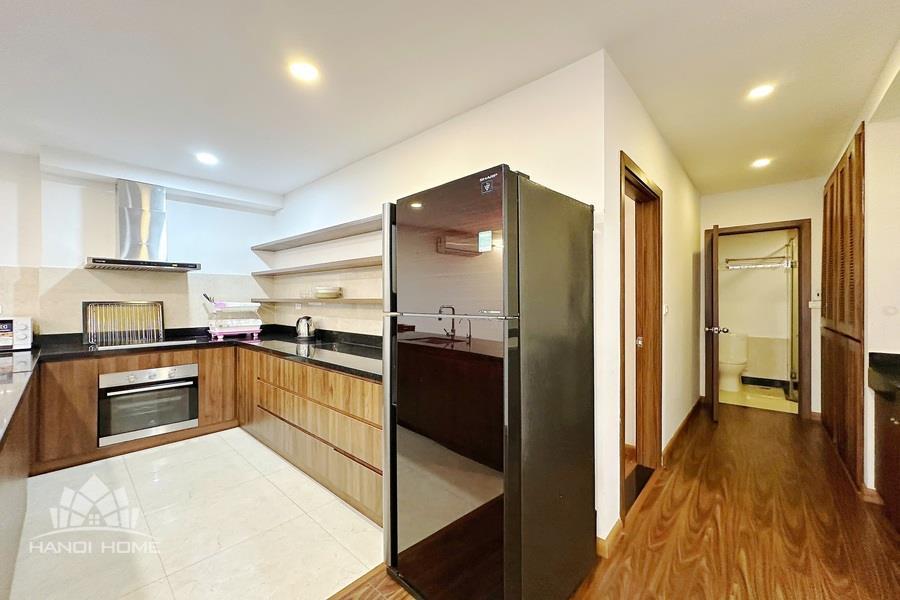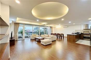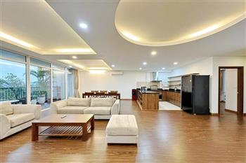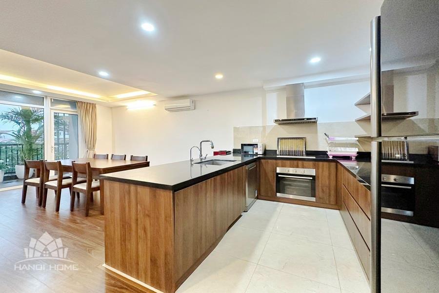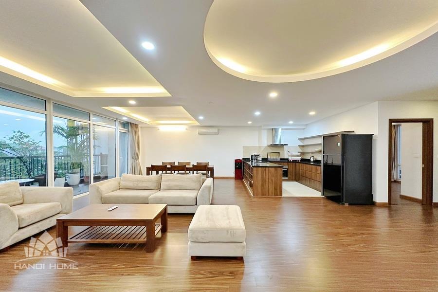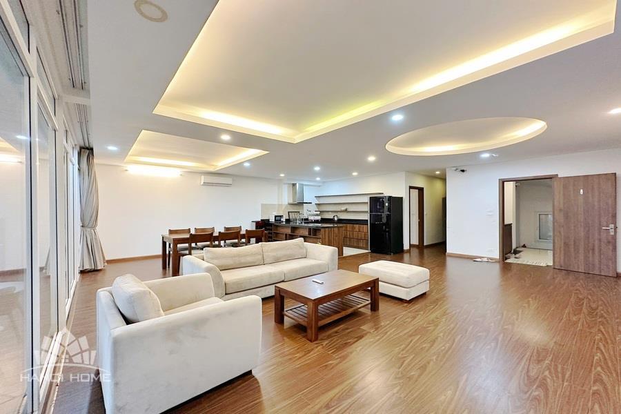 Located in the quiet and upscale area of Tu Hoa, Tay Ho area, this apartment features a modern design, spacious layout, and open views, making it ideal for families or anyone who values comfort and relaxation in a high-quality living environment. • Size: 180m² • Rooms: 3 bedrooms, 2 bathroom, large bathtub • Spacious balcony • Furnishing: Fully equipped with premium modern furniture and appliances The apartment is the perfect choice for those seeking a spacious, comfortable, and luxurious living space in Tây Hồ – where lush nature meets the vibrant rhythm of modern city life. With its refined design and high-end furnishings, this is truly a place where you can enjoy complete relaxation after a long day of work.