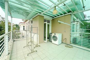 The villa features a contemporary design with a bright and airy living room, large windows that bring in plenty of natural light, and an open-plan kitchen connected to the dining area. The layout is well arranged, maximizing both living space and privacy. There are 4 generously sized bedrooms with built-in wardrobes and large windows. The master bedroom includes an en-suite bathroom and a pleasant view of the surrounding greenery. The bathrooms are modern, fitted with high-quality sanitary equipment.