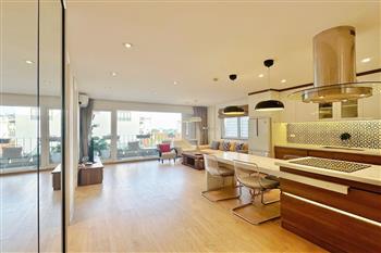 Located on the peaceful and green To Ngoc Van Street, this 2-bedroom apartment offers a spacious 90m² of living space an ideal home in the heart of Tay Ho. Designed with a wide balcony that opens to expansive city views, the apartment is filled with natural light throughout the day. Fully furnished with high-end modern interiors, the apartment features a cozy living room and a well-equipped kitchen, all arranged with elegance in a minimalist and contemporary style. The two bedrooms are spacious and airy, perfectly suited for a small family or expatriates seeking comfort and privacy. With a prime location near West Lake, international restaurants, and surrounding amenities, this apartment is a perfect choice for modern living in Hanoi. Ready for immediate move-in.
