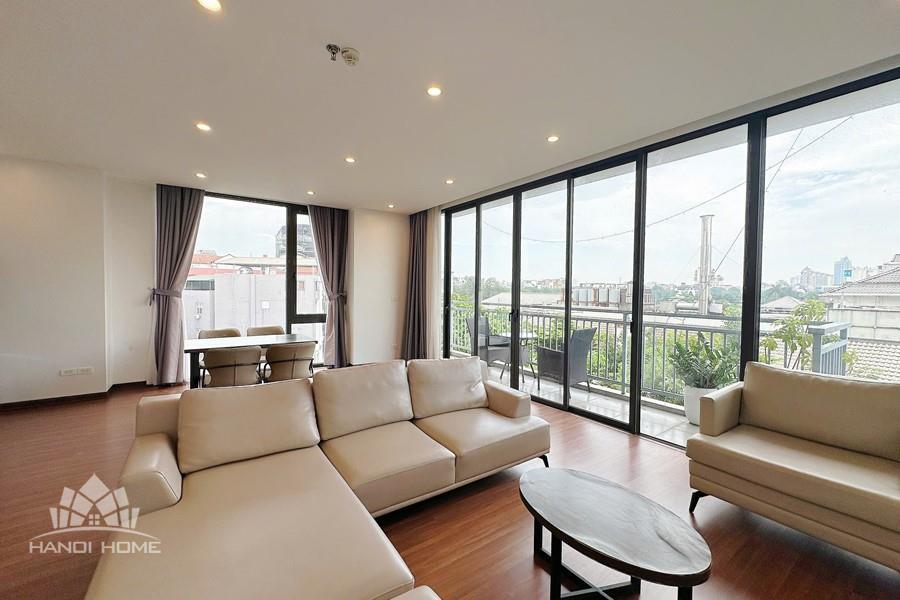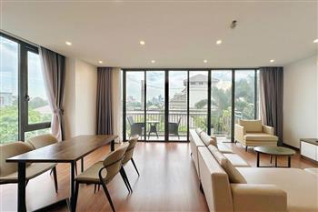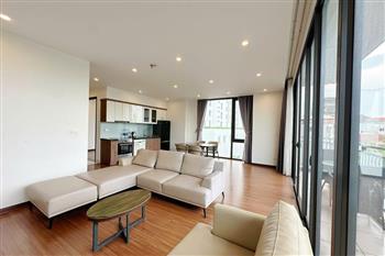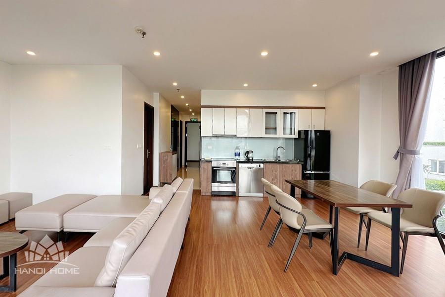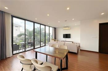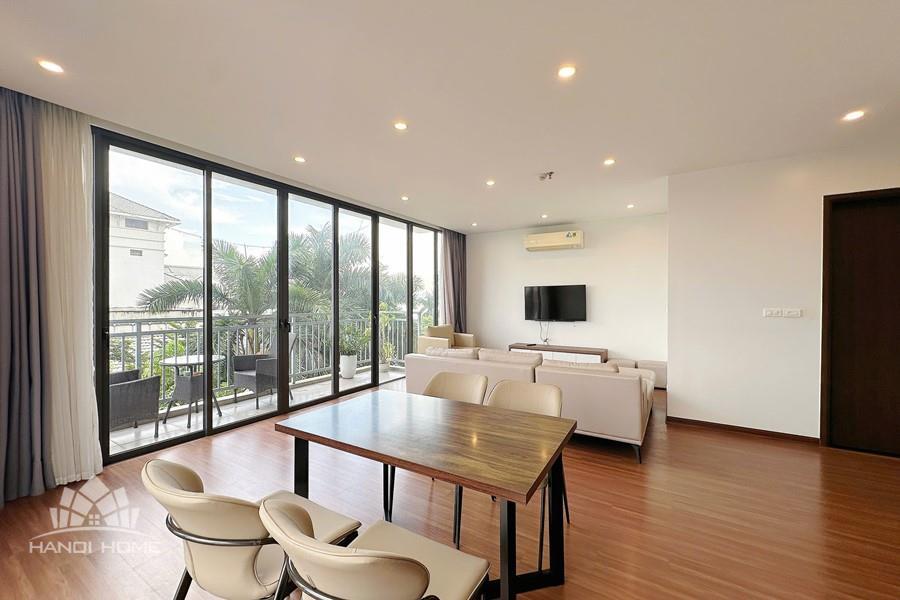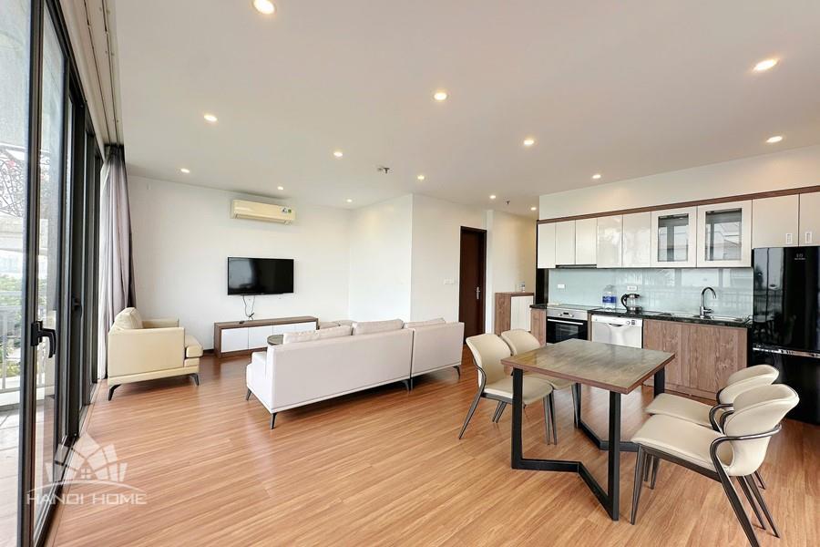 Nestled in the peaceful and green surroundings on Tu Hoa street, Tay Ho, this apartment is an ideal choice for those seeking a bright, comfortable, and contemporary living space. With an open-concept design, the apartment welcomes abundant natural light through large glass doors and features a spacious balcony that creates a seamless connection with nature. The living room, kitchen, and dining area are thoughtfully integrated, offering a fluid layout that maximizes space and functionality. The wide balcony opens to an airy view, perfect for relaxing, growing plants, or enjoying a morning coffee. Three separate bedrooms provide privacy and comfort, making the apartment suitable for multi-generational families, professional groups, or expats living and working in Hanoi.