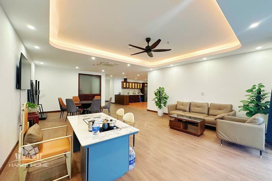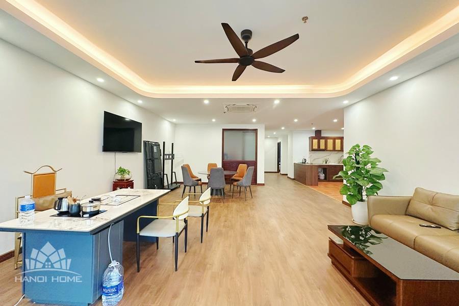 This modern and spacious 3-bedroom apartment for rent is ideally located in the heart of Tay Ho District. With a generous usable area of 250 sqm, the apartment offers an open and comfortable layout, featuring 3 large bedrooms and 2 well-appointed bathrooms. The living and dining areas are bright and airy, with large windows and a private balcony that provides a pleasant outdoor space and abundant natural light. Designed for comfortable long-term living, the apartment is perfect for families or expatriates seeking a quiet yet central location, with easy access to international schools, restaurants, and West Lake amenities.