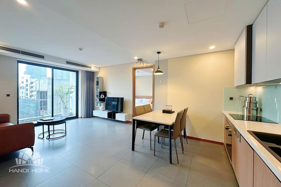 This modern 1-bedroom apartment is located in a very convenient area of Tay Ho, offering easy access to many restaurants, cafes, supermarkets, and other daily amenities. The apartment features a bright living room with a comfortable sofa and a well-equipped kitchen. The bedroom is cozy and designed in a modern style, creating a relaxing atmosphere. It is fully furnished with essential furniture and appliances, ready for immediate move-in.
