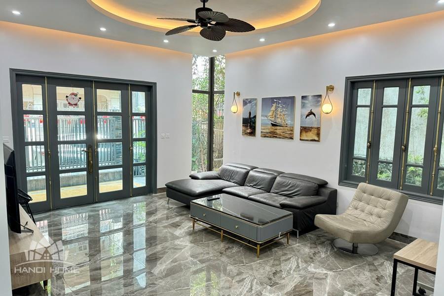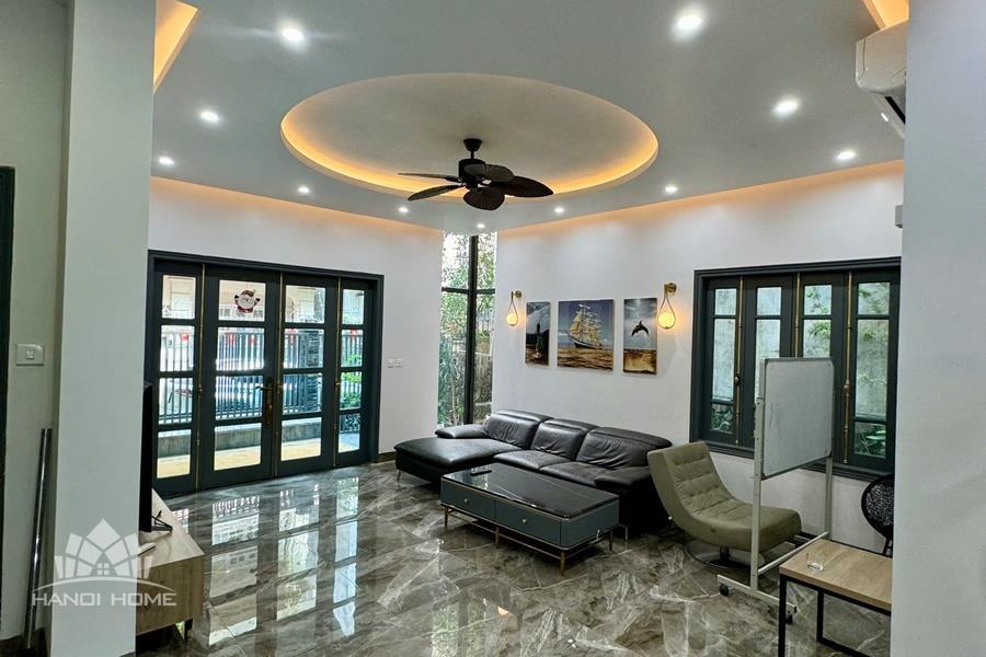 A modern villa for rent in Vong Thi, Tay Ho, offering easy car access and a peaceful living environment. The house features a bright, open-plan living room with large windows, a fully equipped kitchen, and well-sized bedrooms with plenty of natural light. It comes fully furnished with modern interiors and high-quality appliances. The property also includes a private yard, perfect for relaxing or outdoor activities. Located in a quiet area near West Lake, it provides a great balance of convenience and tranquility—ideal for long-term living.
