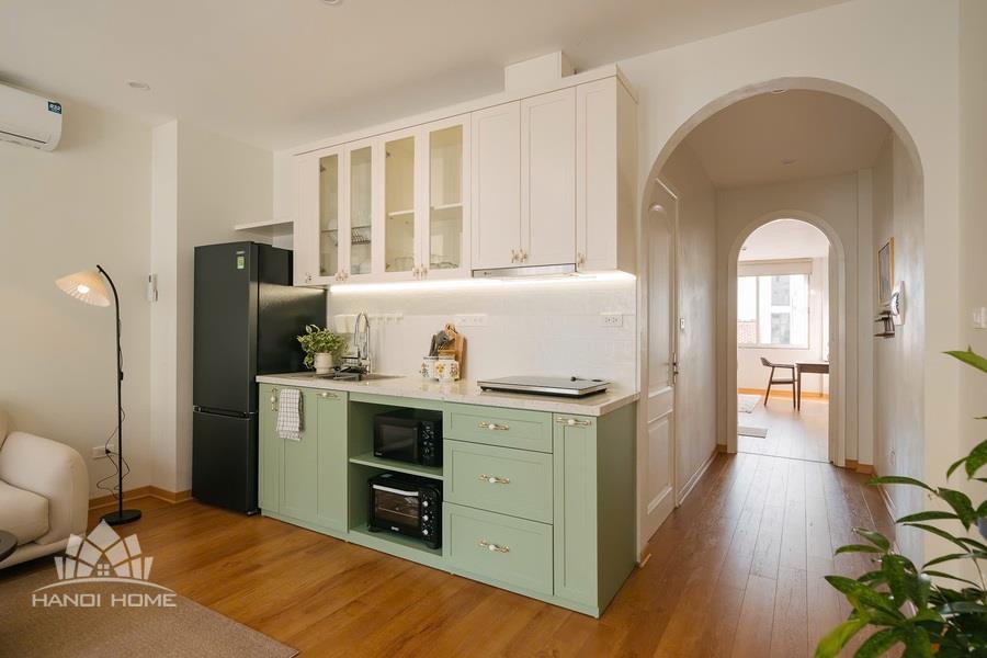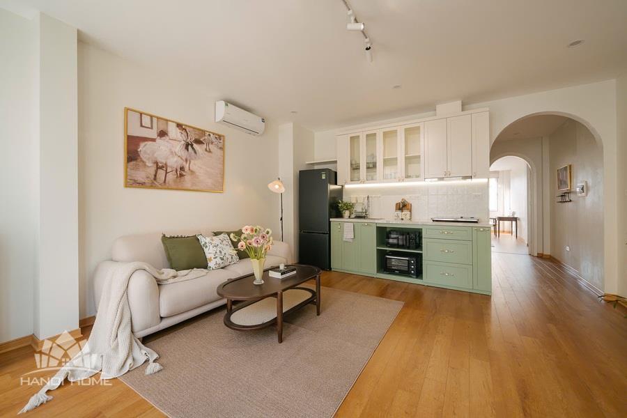 Located in the quiet and green Trang An neighborhood in the heart of Ba Đình District, this 80m² apartment is a perfect blend of vintage charm and modern convenience. Designed in a classic vintage style, every detail has been carefully selected to create a living space that is elegant, cozy, and inspiring.