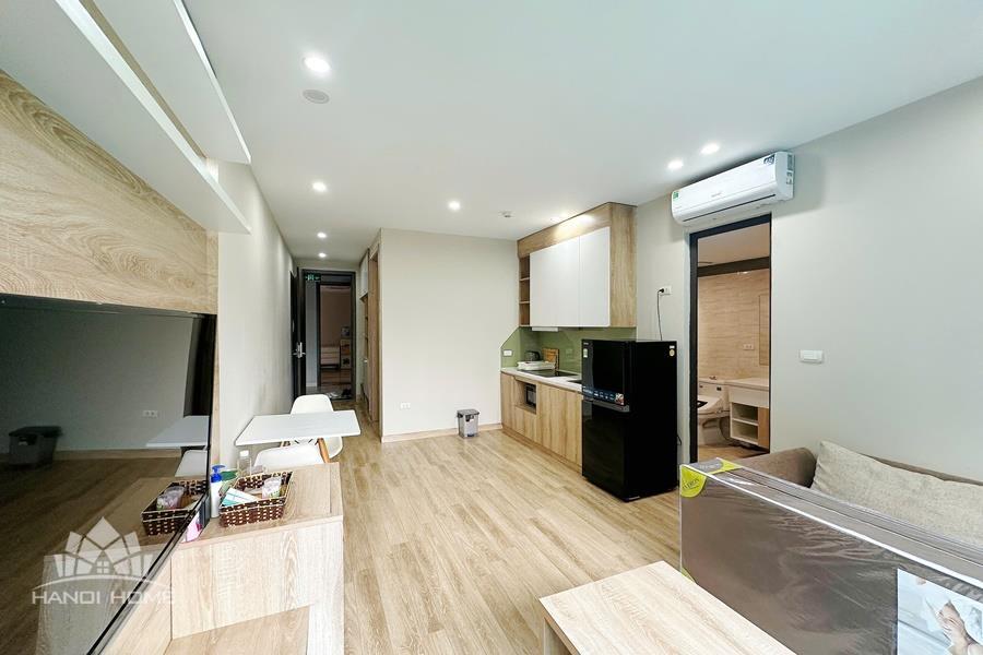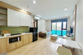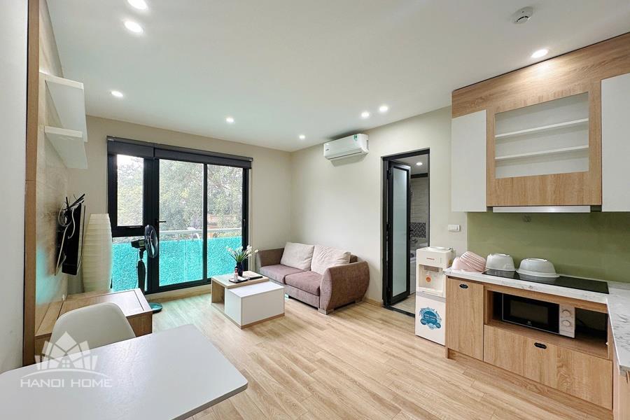 This nice one-bedroom apartment in Vong Thi, Tay Ho offers a cozy and comfortable living space, perfect for a single tenant or a couple. The apartment features a bright living room with large windows that allow plenty of natural light to fill the space. The open-plan layout connects the living area to a compact yet fully equipped kitchen, fitted with modern appliances and sufficient cabinet storage. The bedroom is well-sized and designed for comfort, with a comfortable bed, wardrobe, and good natural light. The bathroom is clean and modern. Fully furnished and ready to move in, this apartment is located in a quiet neighborhood of Tay Ho, offering a peaceful living environment while still being convenient to shops, cafes, and daily amenities.