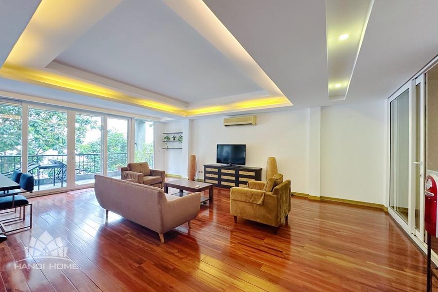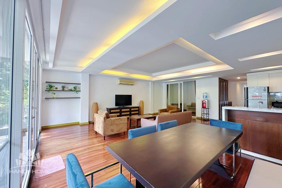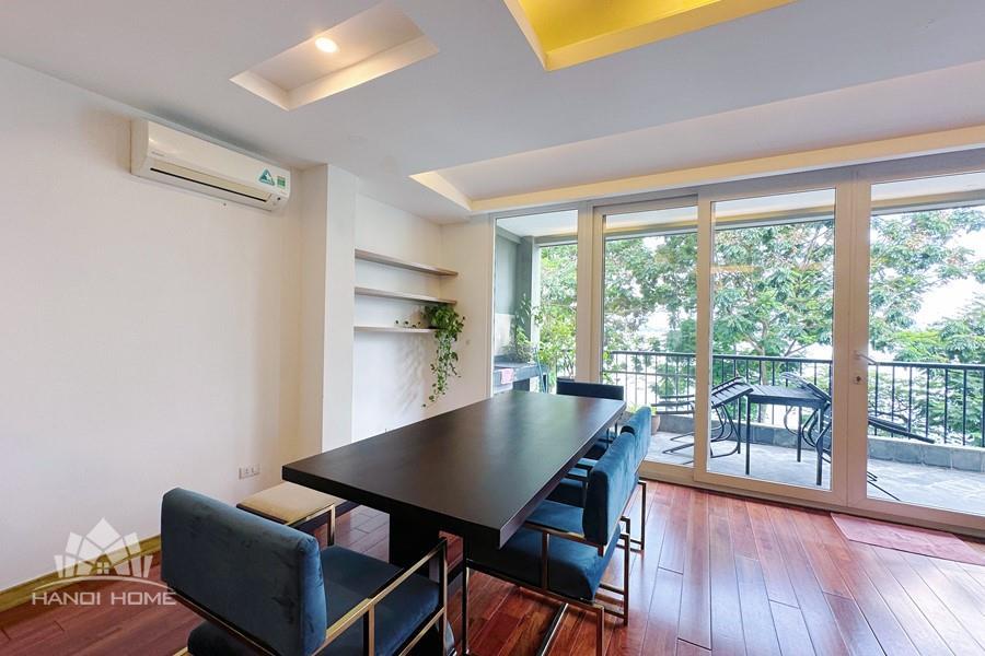 This apartment in Quang Khanh, Tay Ho offers a serene and stylish living space with an open-plan design that maximizes natural light and lake views. Located in a peaceful, green neighborhood near West Lake, the apartment features a spacious balcony—perfect for relaxing, enjoying the breeze, or setting up an outdoor seating area.