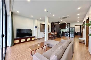 The apartment is located in Vu Mien, Tay Ho, a prime location right next to West Lake, offering an ideal living space with open views and fresh air all year round. Designed in a modern style with an open layout, the apartment seamlessly connects the living room, kitchen, and dining area, creating a spacious and comfortable atmosphere. Natural light floods the space through large glass windows and a lake-facing balcony, bringing brightness and a close connection to nature.