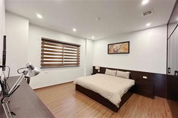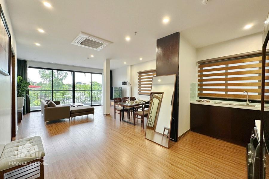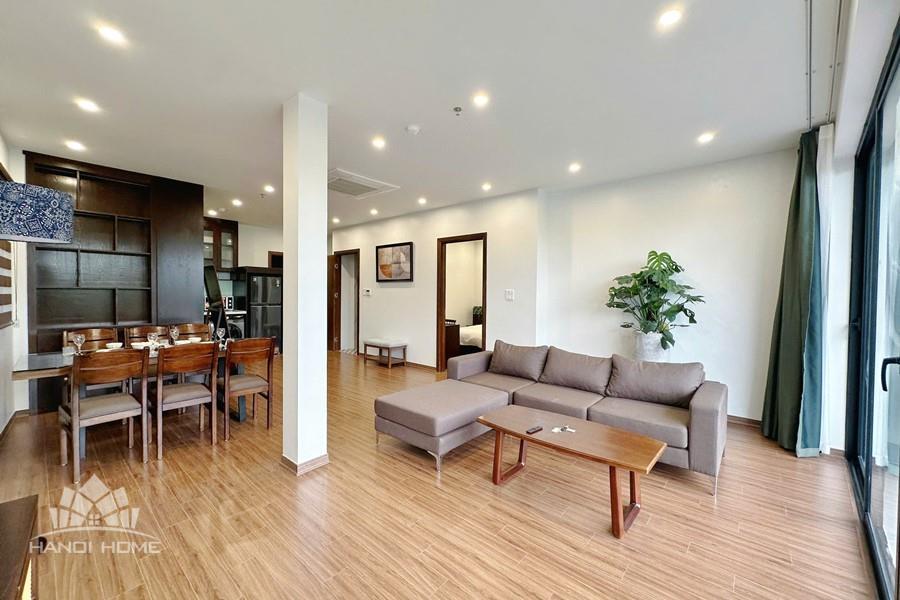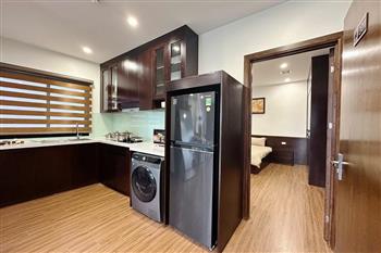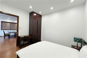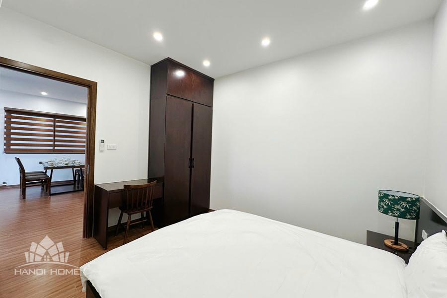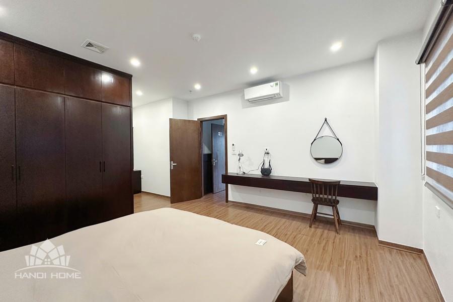The apartment is fully furnished, with each detail carefully selected to ensure both comfort and elegance in daily living. Premium wooden flooring, a gypsum ceiling with recessed lighting, and a central light fixture contribute to the refined and luxurious ambiance of the space. This apartment is perfect for singles, couples, or expatriates seeking a private, well-equipped home with direct access to nature in the heart of Hanoi.