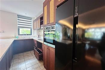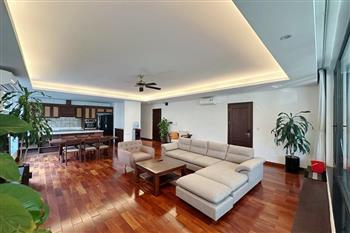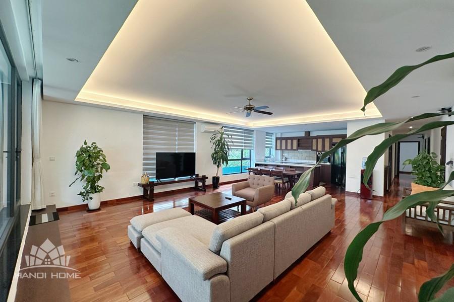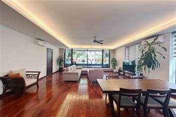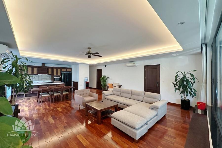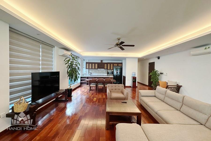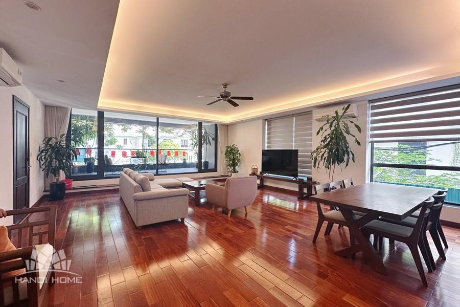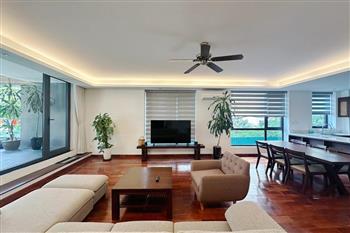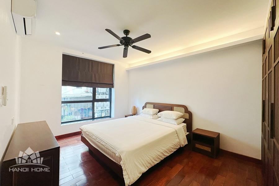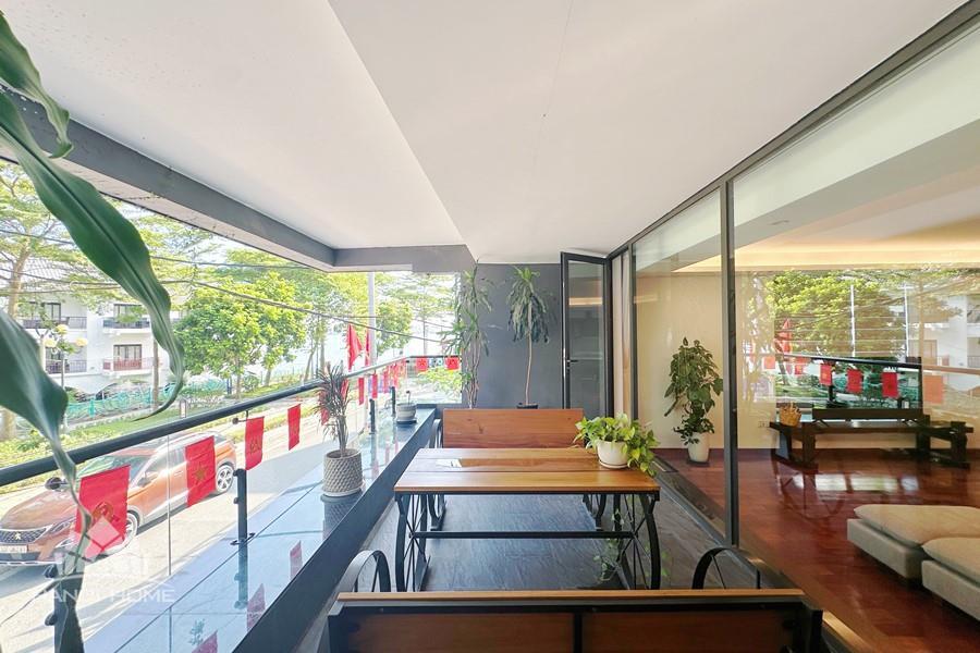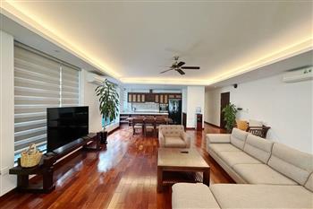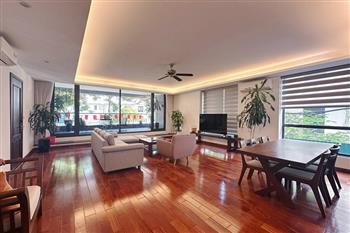 2-bedroom apartment for rent in Tu Hoa, Tay Ho. Located in a quiet and upscale neighborhood near West Lake, this apartment offers a bright, modern living space with large windows that welcome natural light throughout the day. The unit features approximately 95 square meters of living area, including two spacious bedrooms, a comfortable living room, an open-plan kitchen, and an exceptionally wide balcony with panoramic city views. The apartment is fully furnished with contemporary furniture and high-quality appliances: sofa, dining table, beds, wardrobes, washing machine, air conditioning, smart TV, induction stove, microwave, and refrigerator. Natural hardwood flooring adds warmth and elegance to the interior, while floor-to-ceiling windows in both the living room and bedrooms enhance ventilation and brightness. The bathroom is modern and well-equipped with a glass shower cabin. Conveniently located within walking distance to lakeside cafés, international restaurants, supermarkets, gyms, and yoga studios. The area is safe, quiet, and popular among expats and professionals. Ideal for those seeking a stylish and comfortable home in Hanoi.