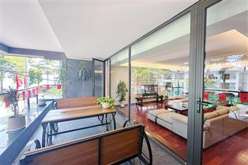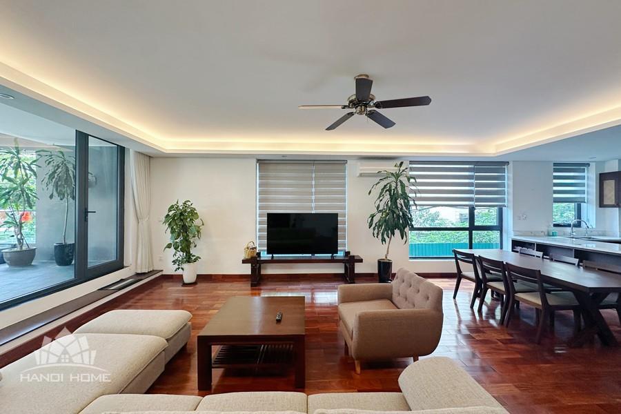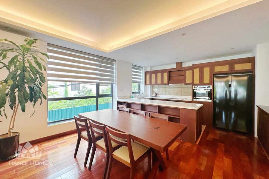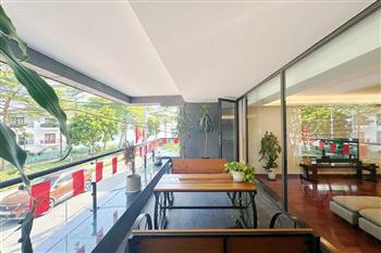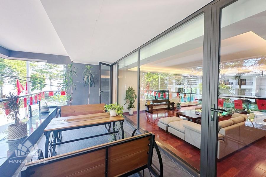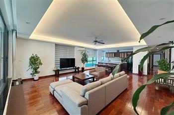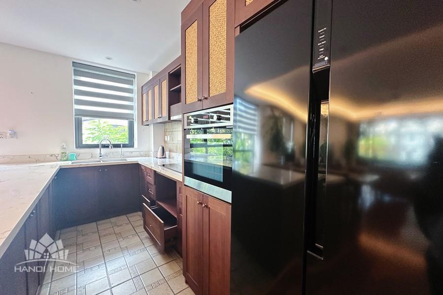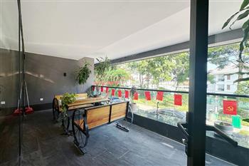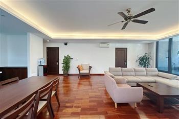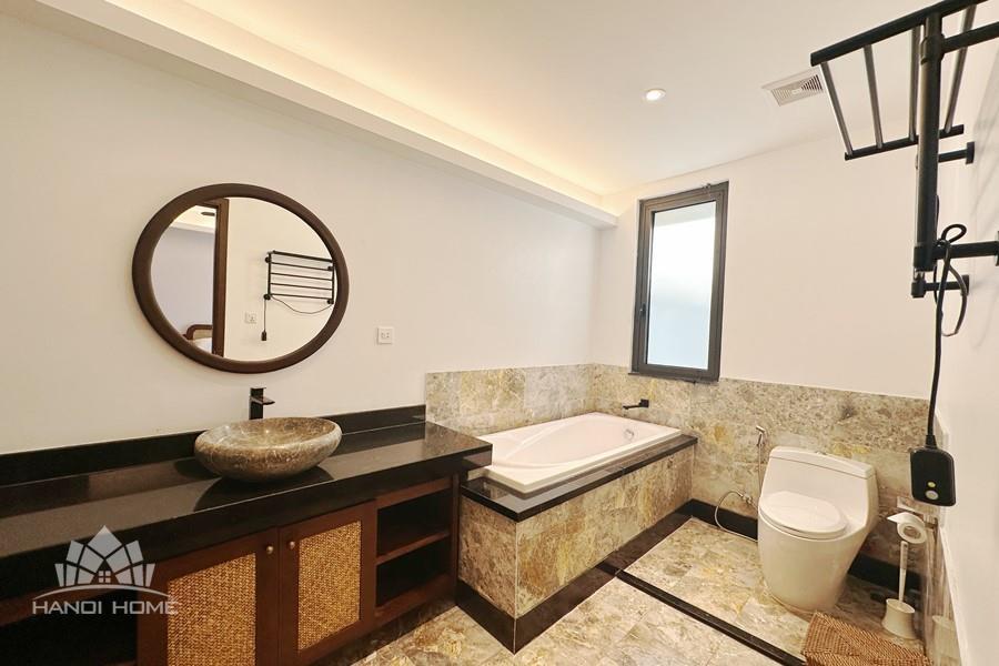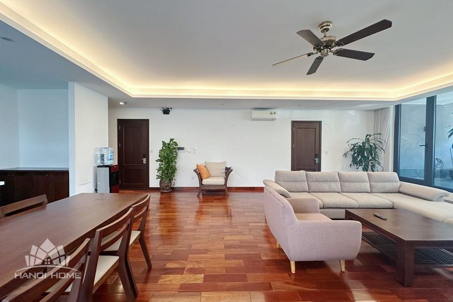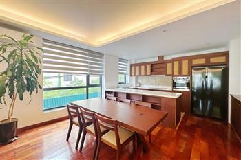 2-bedroom apartment for rent in Tu Hoa, Tay Ho. Located in a quiet and upscale neighborhood near West Lake, this apartment offers a bright, modern living space with large windows that welcome natural light throughout the day. The unit features approximately 95 square meters of living area, including two spacious bedrooms, a comfortable living room, an open-plan kitchen, and an exceptionally wide balcony with panoramic city views. The apartment is fully furnished with contemporary furniture and high-quality appliances: sofa, dining table, beds, wardrobes, washing machine, air conditioning, smart TV, induction stove, microwave, and refrigerator. Natural hardwood flooring adds warmth and elegance to the interior, while floor-to-ceiling windows in both the living room and bedrooms enhance ventilation and brightness. The bathroom is modern and well-equipped with a glass shower cabin. Conveniently located within walking distance to lakeside cafés, international restaurants, supermarkets, gyms, and yoga studios. The area is safe, quiet, and popular among expats and professionals. Ideal for those seeking a stylish and comfortable home in Hanoi.
