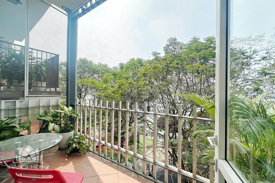 This spacious 1-bedroom apartment is located on Vu Mien Street in Tay Ho, a quiet and convenient area near West Lake. The apartment features a bright living room with large windows and a private balcony offering a beautiful lake view, bringing plenty of natural light and fresh air.