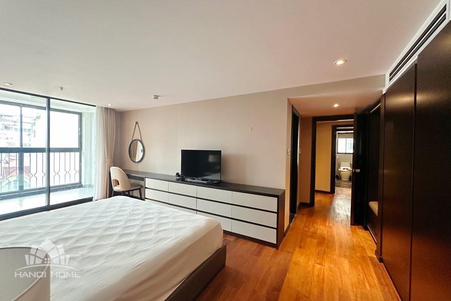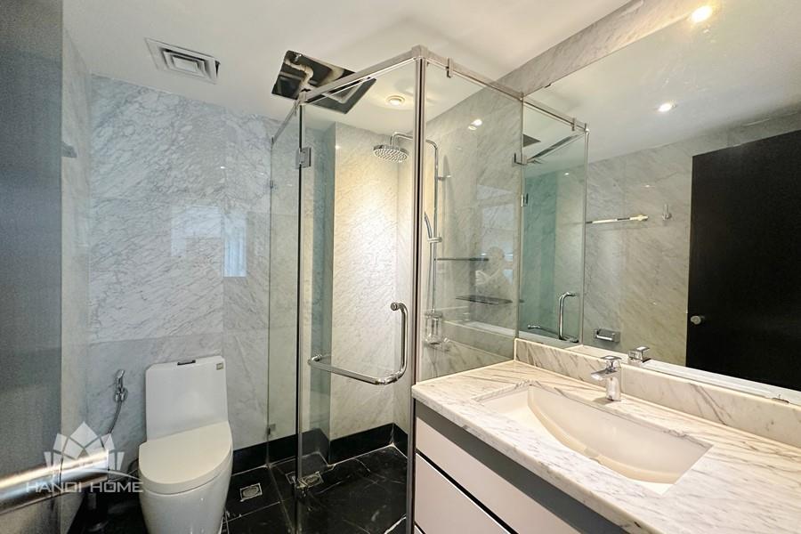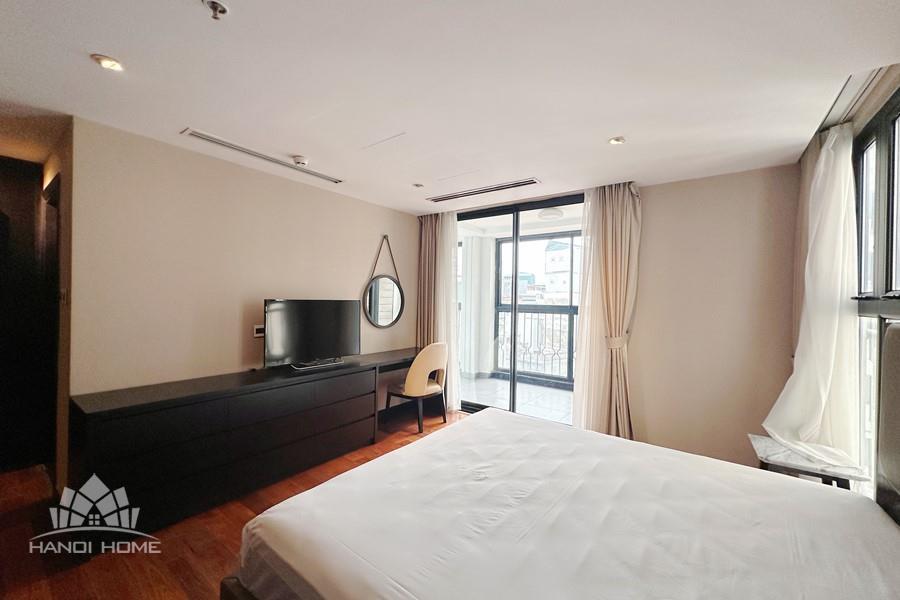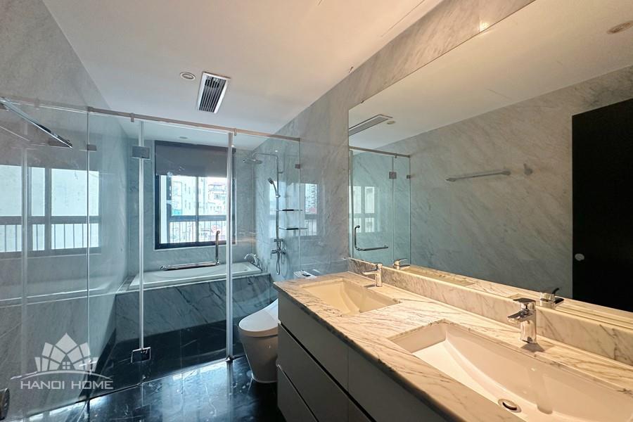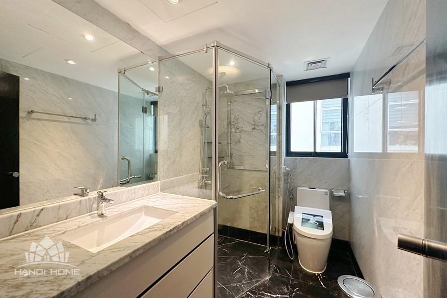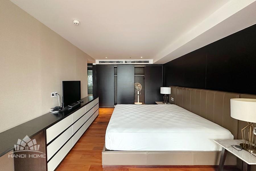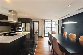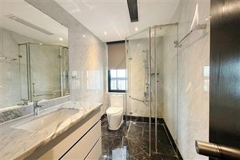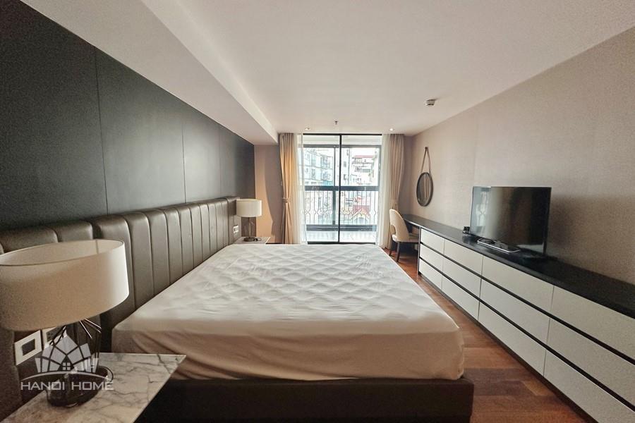 This spacious 3-bedroom apartment is located on Tran Hung Dao Street in Hoan Kiem District — a prime central location offering seamless access to Hanoi’s administrative, cultural, and entertainment hubs. Designed in a contemporary style, the apartment stands out with its open layout and floor-to-ceiling windows that flood every room with natural light, creating a bright, airy, and welcoming atmosphere. A wide balcony with panoramic city views provides the perfect spot to unwind, enjoy a cup of tea, or take in the sparkling skyline at night. The living room is tastefully furnished with a premium leather sectional sofa, a sleek coffee table, a central chandelier, and recessed ceiling lighting, striking a balance between elegance and comfort. The open-plan kitchen connects seamlessly to the living area and is fully equipped with modern appliances including an induction cooktop, microwave, refrigerator, range hood, and smart cabinetry — ideal for home cooking enthusiasts. Each of the three bedrooms is uniquely designed with its own character: the master bedroom is spacious, featuring a king-size bed, built-in wardrobe, work desk, and windows opening to the balcony; the second bedroom has a youthful vibe, perfect for children or visiting guests; and the third bedroom is minimalist, suitable as a home office or a quiet retreat for older family members. The bathroom is sleek and functional, fitted with a walk-in shower, vanity sink, large mirror, and high-quality materials to ensure daily comfort and convenience. This apartment offers a harmonious blend of aesthetics and functionality, delivering a refined living experience in the heart of Hanoi’s historic Old Quarter.