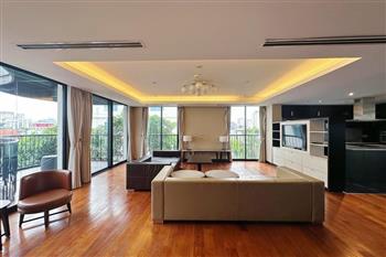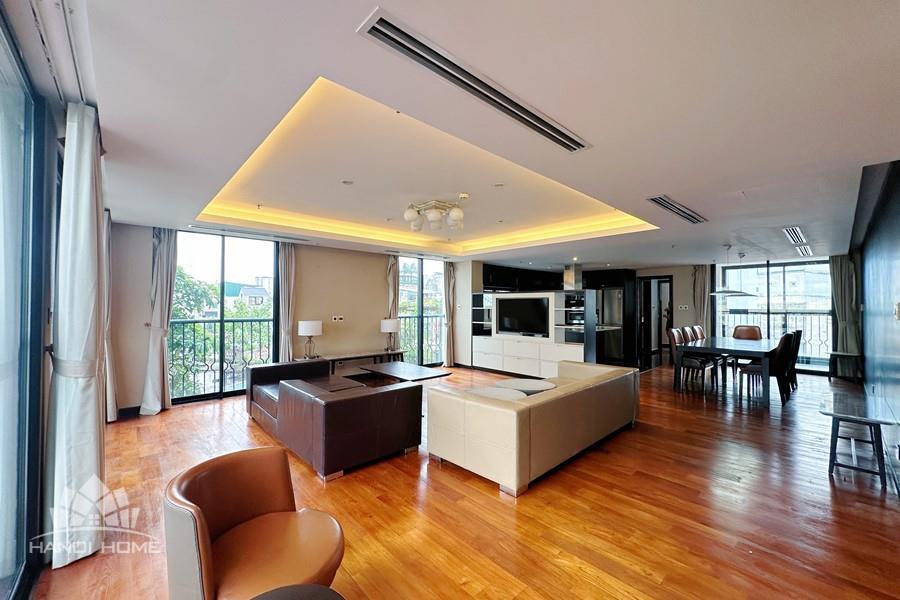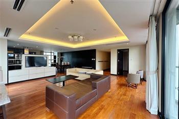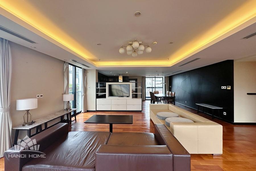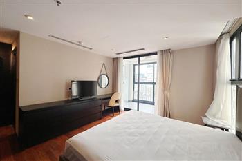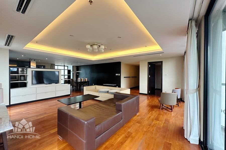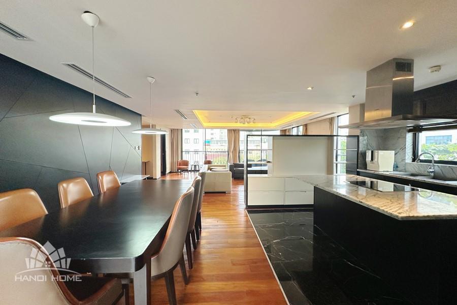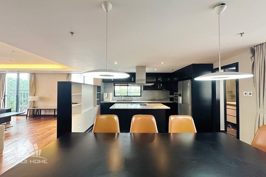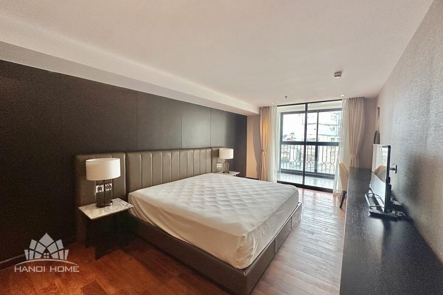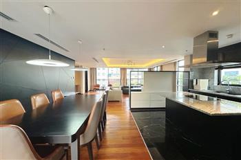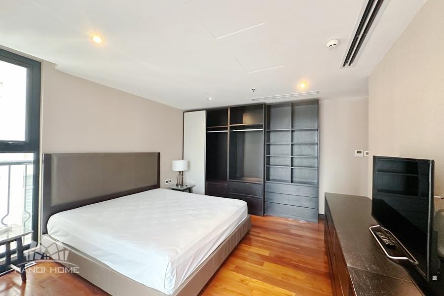 This spacious 3-bedroom apartment is located on Tran Hung Dao Street in Hoan Kiem District — a prime central location offering seamless access to Hanoi’s administrative, cultural, and entertainment hubs. Designed in a contemporary style, the apartment stands out with its open layout and floor-to-ceiling windows that flood every room with natural light, creating a bright, airy, and welcoming atmosphere. A wide balcony with panoramic city views provides the perfect spot to unwind, enjoy a cup of tea, or take in the sparkling skyline at night. The living room is tastefully furnished with a premium leather sectional sofa, a sleek coffee table, a central chandelier, and recessed ceiling lighting, striking a balance between elegance and comfort. The open-plan kitchen connects seamlessly to the living area and is fully equipped with modern appliances including an induction cooktop, microwave, refrigerator, range hood, and smart cabinetry — ideal for home cooking enthusiasts. Each of the three bedrooms is uniquely designed with its own character: the master bedroom is spacious, featuring a king-size bed, built-in wardrobe, work desk, and windows opening to the balcony; the second bedroom has a youthful vibe, perfect for children or visiting guests; and the third bedroom is minimalist, suitable as a home office or a quiet retreat for older family members. The bathroom is sleek and functional, fitted with a walk-in shower, vanity sink, large mirror, and high-quality materials to ensure daily comfort and convenience. This apartment offers a harmonious blend of aesthetics and functionality, delivering a refined living experience in the heart of Hanoi’s historic Old Quarter.