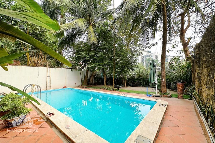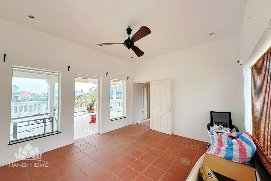 A private swimming pool is nestled within a landscaped garden, complete with natural stone decking and a sunbathing area. The villa also includes wide balconies and rooftop terraces perfect for enjoying views of West Lake or hosting weekend BBQs.