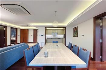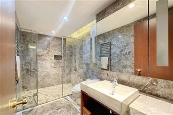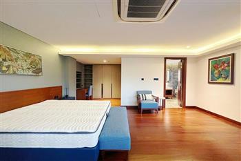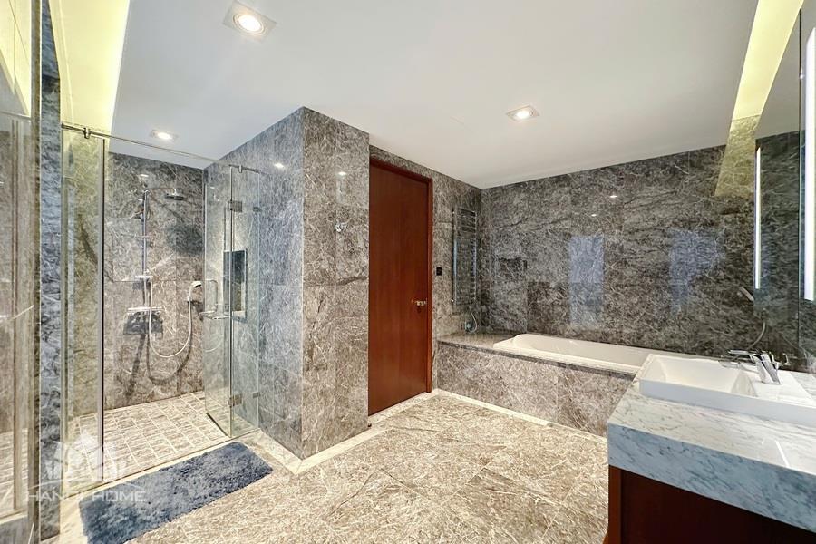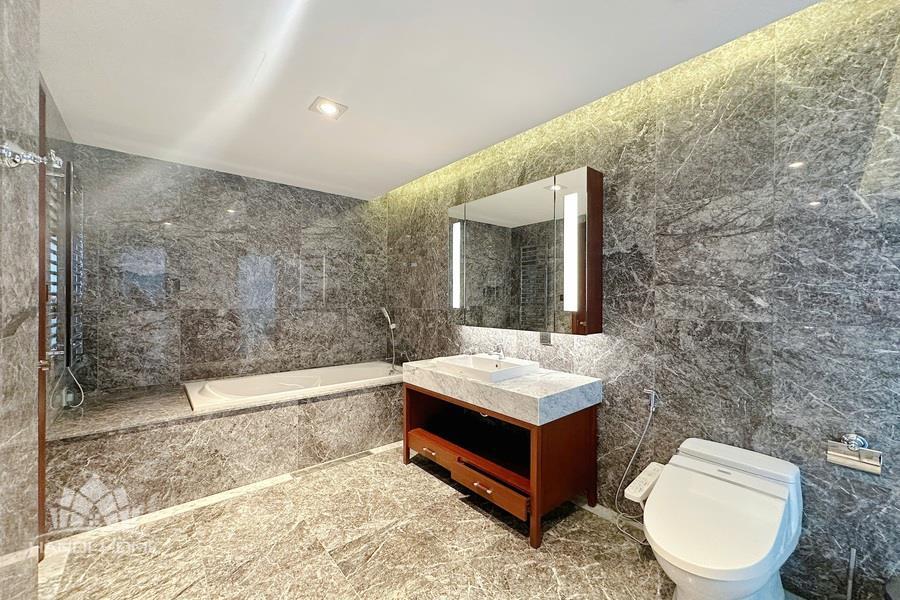 Features: • Spacious 128m² layout including 2 bedrooms and 2 bathrooms • Open-plan design that maximizes natural light through large windows • High-quality wooden flooring paired with a gypsum ceiling and recessed lighting for a warm, elegant ambiance • Direct view of Truc Bach Lake, offering daily moments of relaxation • Peaceful and fresh environment, perfect for both rest and productivity Furnishings & Amenities: • Fully equipped with modern furniture: premium sofa, large dining table, natural wood kitchen cabinets, and spacious beds • Integrated living and dining area for a seamless, open feel • Kitchen includes full appliances: refrigerator, microwave, range hood, and induction cooktop • Large bathroom with a relaxing bathtub, high-end shower, and anti-fog mirror • Includes washing machine, ceiling-mounted air conditioning, and a stable hot water system