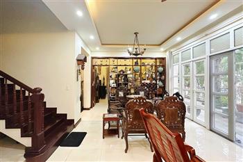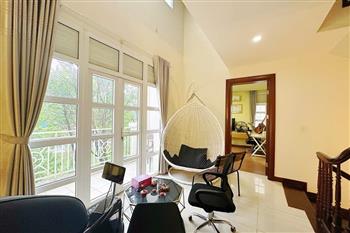 This impressive 6-bedroom villa is located in the prestigious Splendora An Khánh urban area, offering generous living space and premium amenities for a large family or expat community. The villa features a spacious and bright living room, and large windows that bring in abundant natural light. The kitchen is fully equipped with high-quality appliances, ample storage cabinets, and a large dining area perfect for family gatherings. There are 6 well-proportioned bedrooms, all fully furnished with comfortable beds, wardrobes, air conditioners, and tasteful décor. The master bedroom comes with an en-suite bathroom and a private balcony overlooking the quiet neighborhood. A special highlight of this villa is the private sauna room, providing a relaxing space for wellness and comfort right at home.