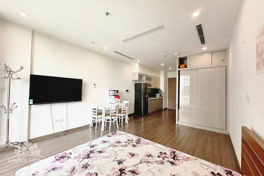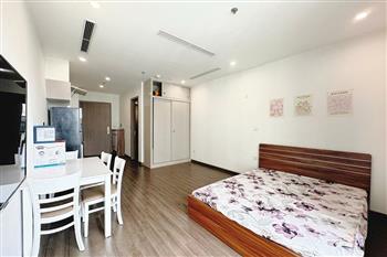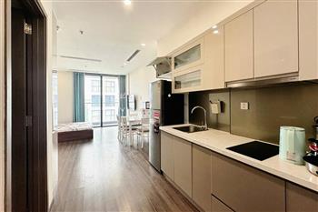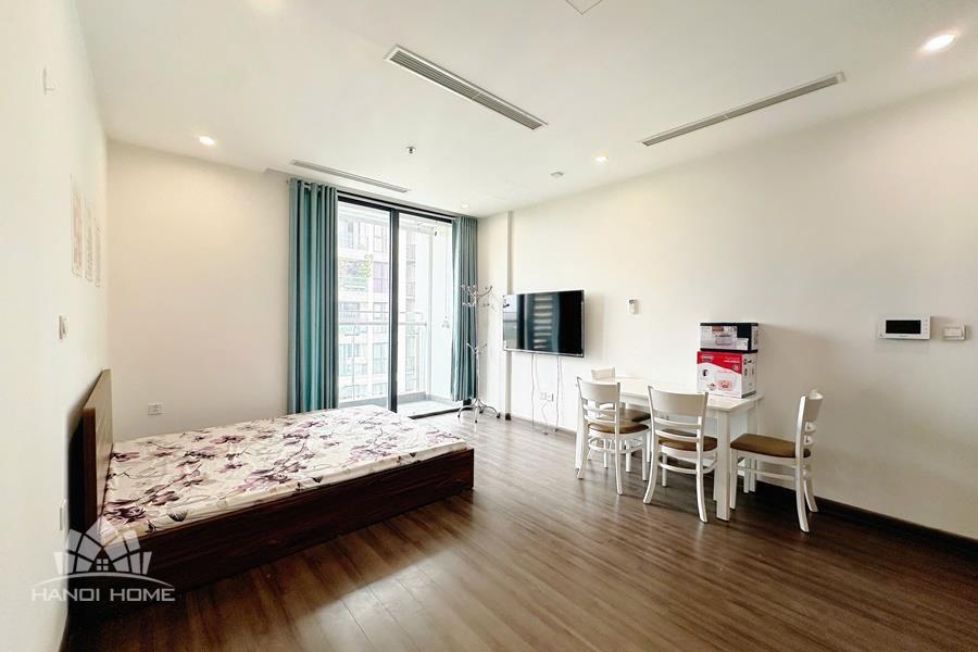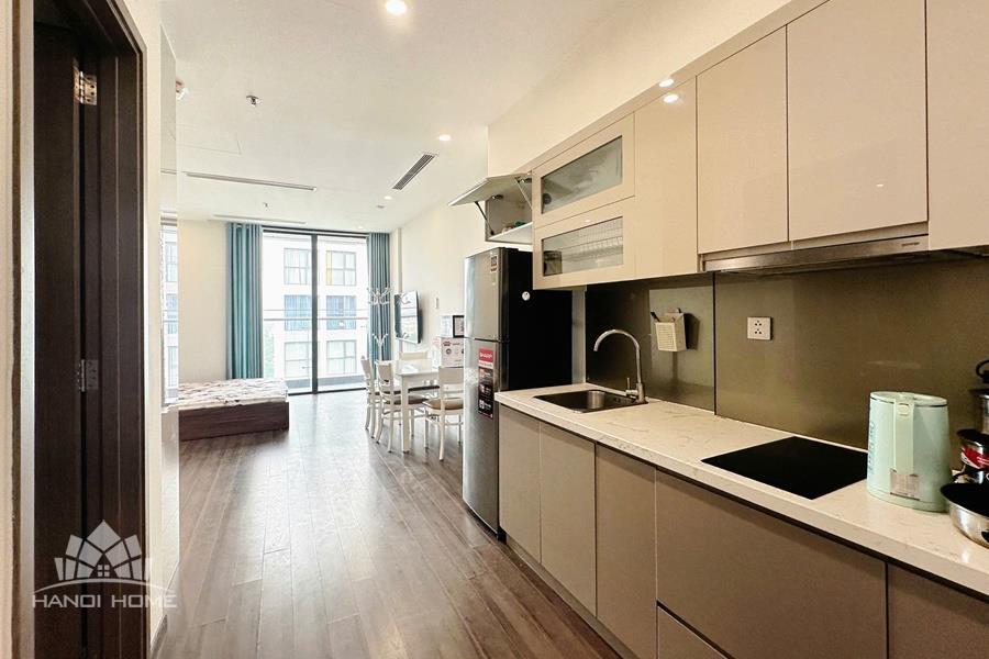 This apartment is located on the high floor of tower of Vinhomes Symphony Long Bien Ha noi, It has a nice balcony view to internal area and the surrounding residences. It is nice designed with total living area of 40sqm, composed into a living room combined with kitchen and dining area