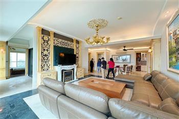 • Expansive and airy, featuring floor-to-ceiling windows, high-quality wooden flooring, and a neutral color palette that enhances brightness and elegance
