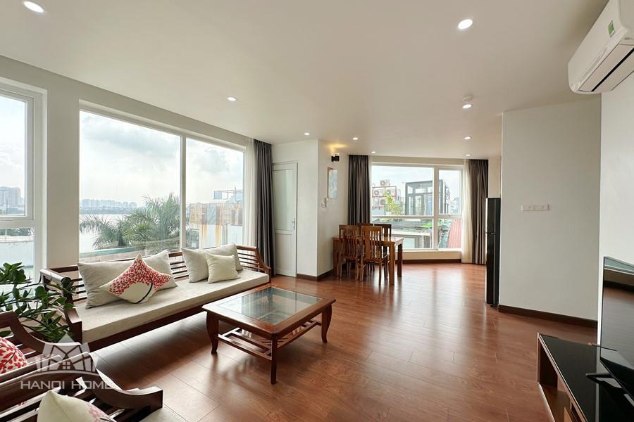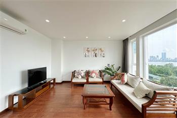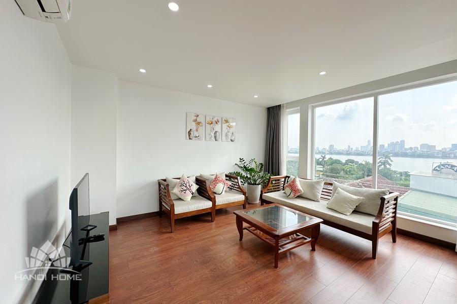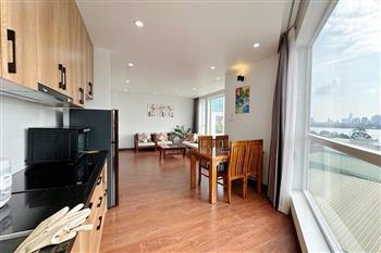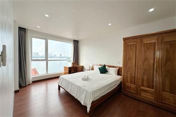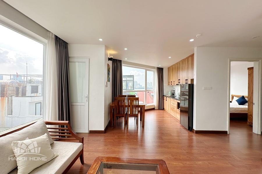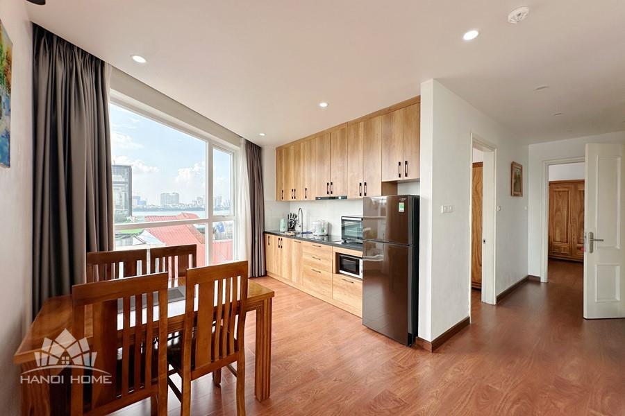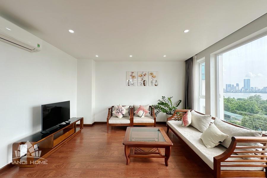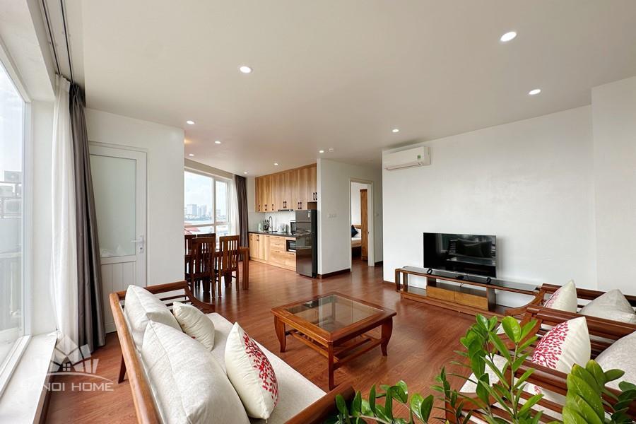 2-bedroom apartment in Xóm Chùa, Tây Hồ – a peaceful living space in the heart of Hanoi. Located in a quiet and scenic neighborhood, this apartment offers a refined lifestyle with modern design and abundant natural light. Its most striking feature is the large floor-to-ceiling glass windows that welcome sunlight throughout the day and open up to a stunning view of West Lake, where the water reflects the morning light and glows beautifully at sunset.