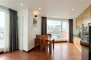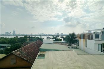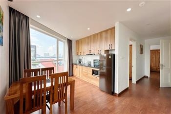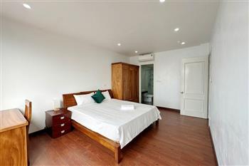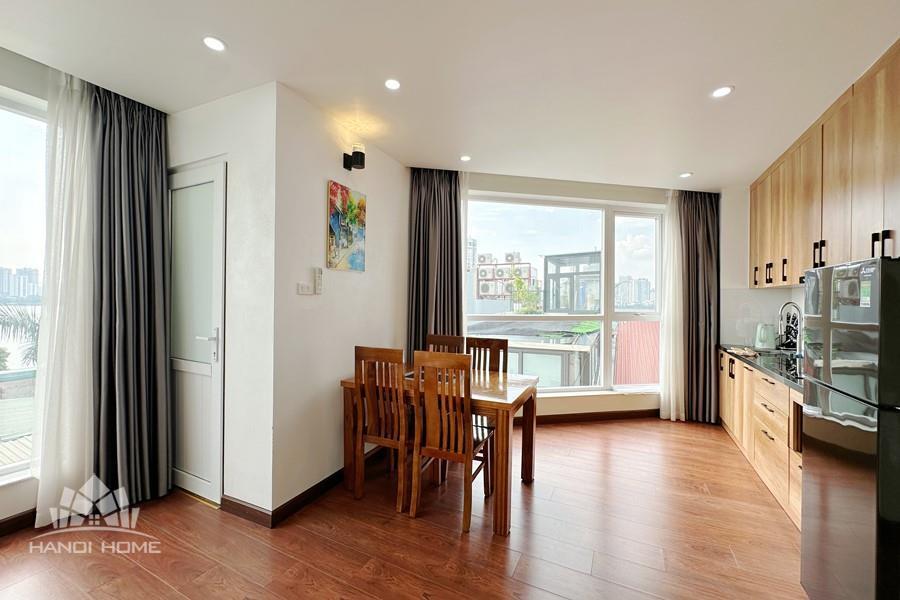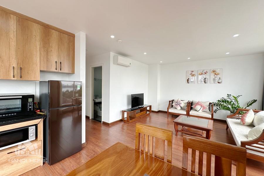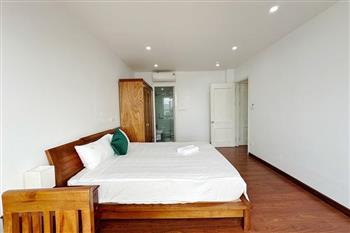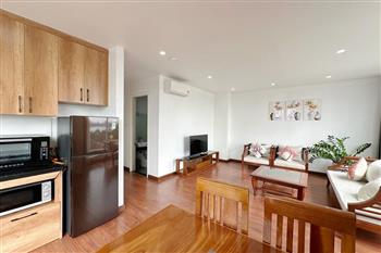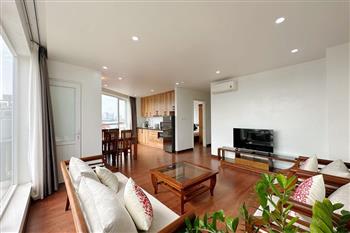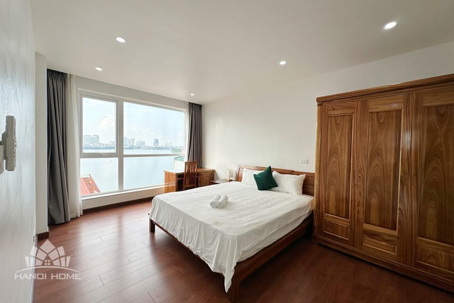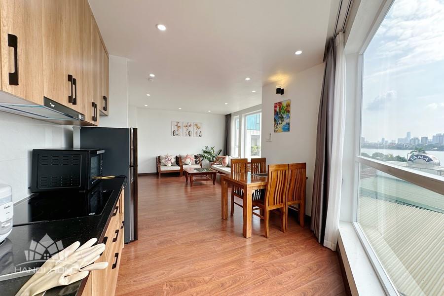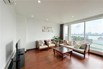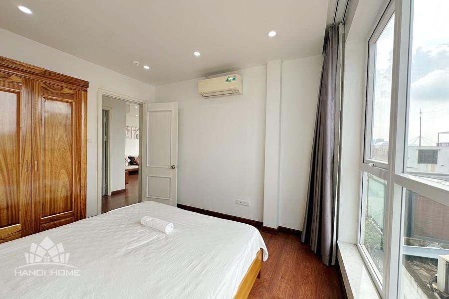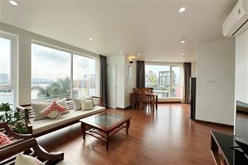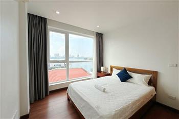 2-bedroom apartment in Xóm Chùa, Tây Hồ – a peaceful living space in the heart of Hanoi. Located in a quiet and scenic neighborhood, this apartment offers a refined lifestyle with modern design and abundant natural light. Its most striking feature is the large floor-to-ceiling glass windows that welcome sunlight throughout the day and open up to a stunning view of West Lake, where the water reflects the morning light and glows beautifully at sunset.