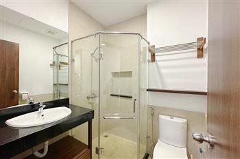This premium two-bedroom apartment in Quang Khanh, Tay Ho features a contemporary open-plan layout that seamlessly connects the living room, kitchen, and dining area, creating a spacious and airy atmosphere. Floor-to-ceiling glass windows flood the space with natural light and offer breathtaking views of West Lake, where shimmering waters reflect the golden hues of sunset.