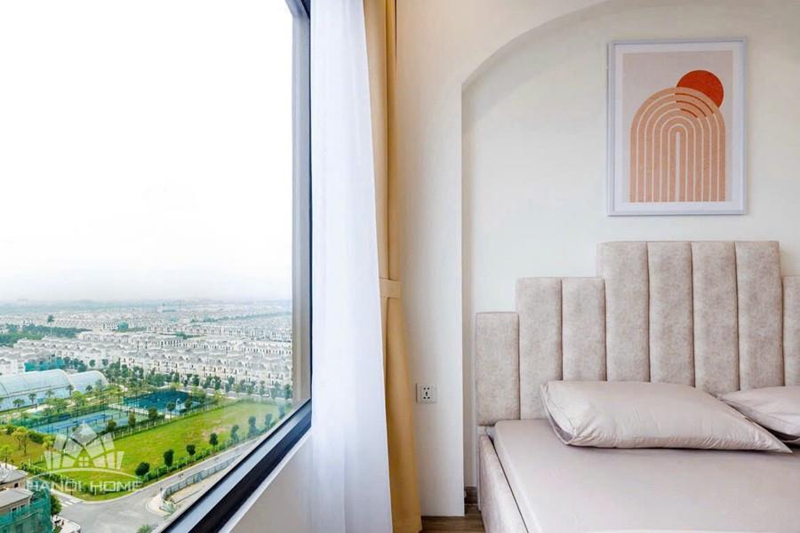 This beautiful apartment offers a breathtaking panoramic view of the modern Vinhomes Ocean Park cityscape, a perfect harmony between vibrant urban living and refreshing green surroundings. From the large floor-to-ceiling windows, residents can enjoy a wide view of the serene lake, sports courts, and elegant villas stretching to the horizon, creating a picturesque and inspiring living scene every day.