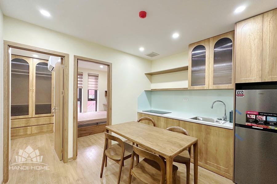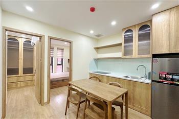 Nestled on the quiet and leafy Hoang Hoa Tham Street, Tay Ho area, this 2-bedroom apartment offers a cozy and comfortable living space with a total area of 55m². Its modern design is complemented by high-quality wooden furnishings, creating a warm, elegant, and relaxing atmosphere. The apartment features two separate bedrooms, a combined living room, kitchen, and dining area, along with a fully equipped bathroom. Conveniently located near West Lake, it’s just steps away from cafés, restaurants, supermarkets, and international schools. Ideal for couples, small families, or expats seeking a well-appointed, private home with easy access to the city center.